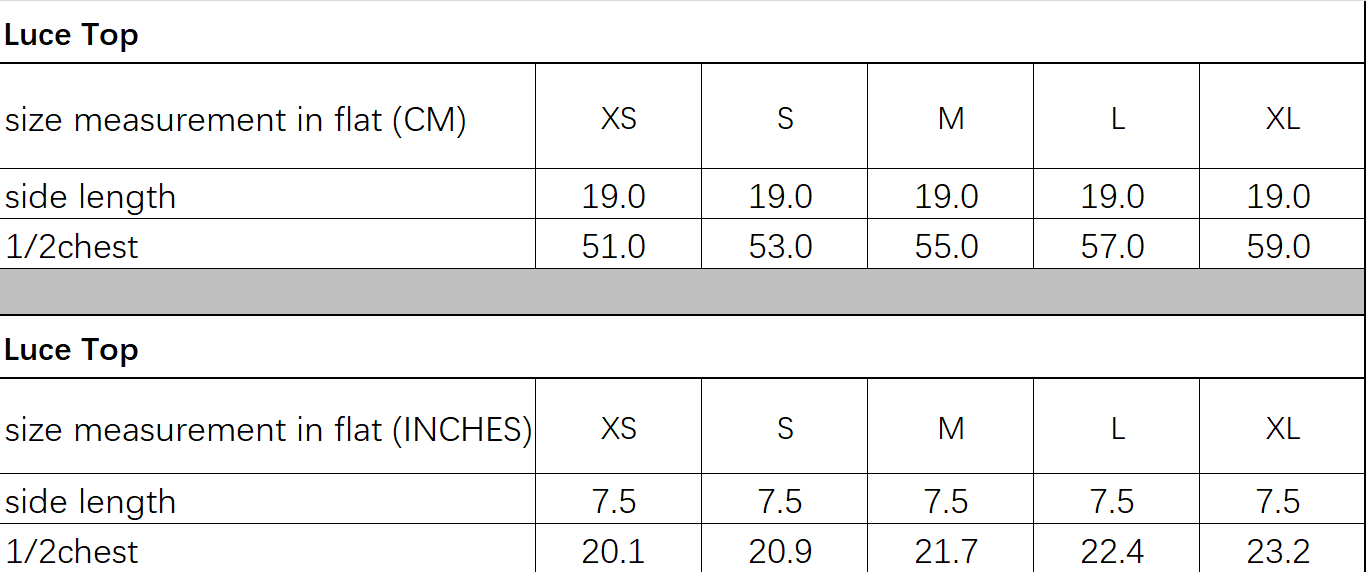 The model measurements are: 179 cm / 5' 10½''; Bust 81 cm / 32"; Waist 59.5 cm / 23½''; and Hips 87 cm / 34½''. She's wearing a size XS.