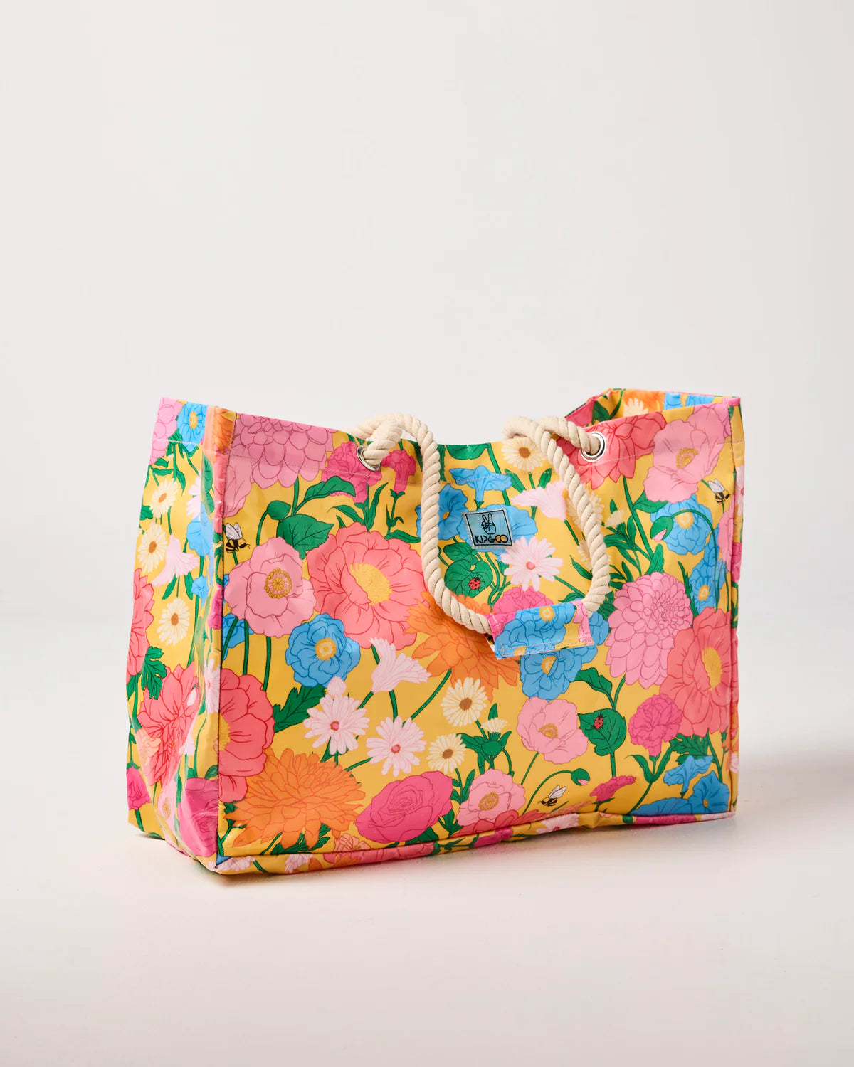 Big plans, busy days, or beach trips, our Follow The Sun Yellow Carry All has you sorted! Made from recycled plastic coated canvas, it’s roomy, sturdy, and splashed in signature Kip&Co print. Featuring hand-drawn florals in shades of pink, orange, and cornflower blue, dotted with friendly little bees and lady beetles on a sunny yellow base. Pack it, sling it, love it, this bag is built to carry it all (and look good doing it).