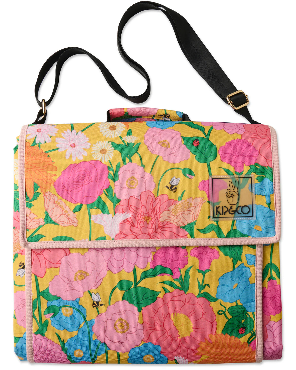 From beach hangs to park feasts, our printed Follow The Sun Yellow Picnic Mat is your summer sidekick. With a bold Kip&Co print featuring hand-drawn florals in shades of pink, orange, and cornflower blue on a sunny yellow base, plus durable design, and roomy size, it’s made for long lunches, laughter, and lazing about. Easy to carry, easy to clean, this mat is pure good vibes, rolled up and ready to go.