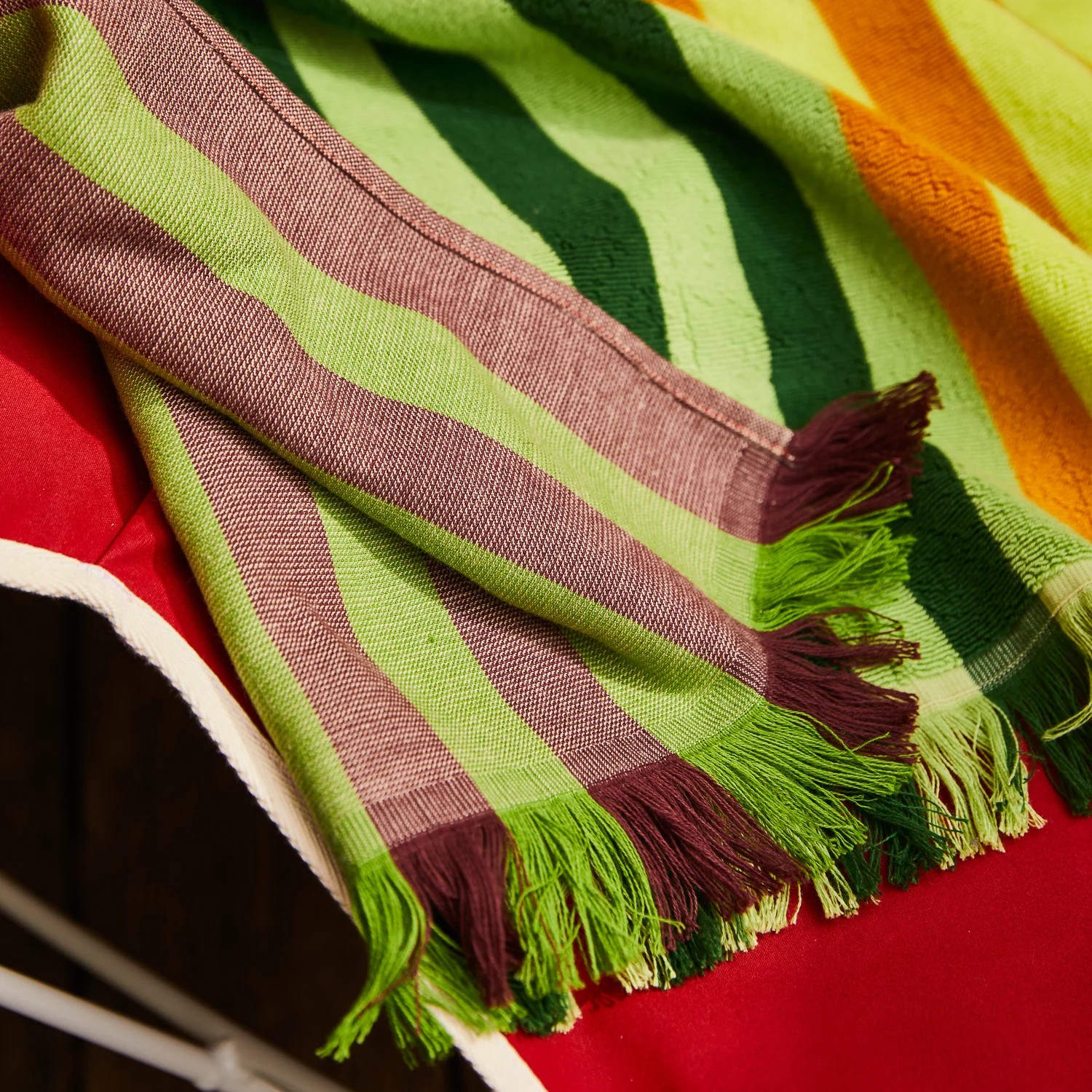 Designed with sunny escapes in mind, these towels offer a lighter twist on traditional terry. Plush and absorbent on the front with a smooth, lightweight finish on the back, they dry quickly, pack easily and bring comfort without the bulk.